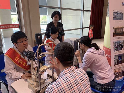 济南市二院志愿者在活动现场为市民进行眼科检查