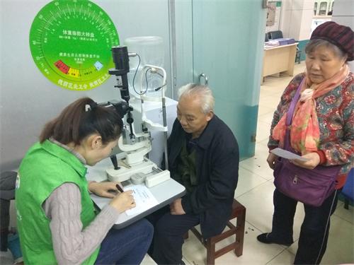 团委组织青年志愿者赴匡山社区卫生服务中心开展“健康驿站”活动,为社区居民进行眼科义诊服务。