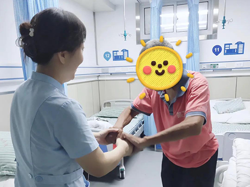住院期间,王大爷对陌生环境抗拒,对医护人员检查抵触,针对王大爷的特殊情况,副主任医师栗映梅与医护团队进行了量身定做方案。由专职护士在患者家属配合下一对一与患者交流沟通,给患者放音乐、讲故事、拉家常等满足患者一些心理需要,渐进式拉近与患者的距离,让患者感受到安心和放心。