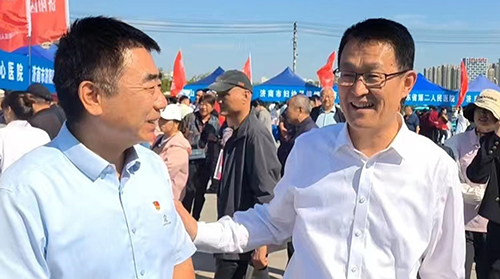 山东省卫健委党组成员、副主任徐民与副院长王旭亲切交谈
