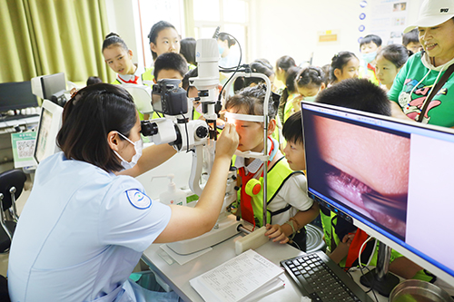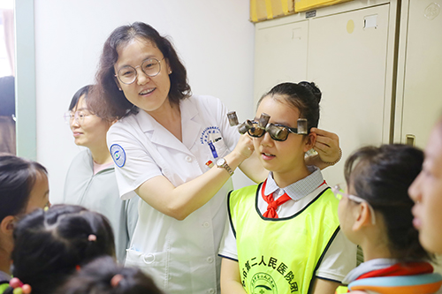在市二院西院一楼配镜中心,学生们有序进行验光检查,检查结束后,验光师王虹欣向学生们讲解了如何读懂手中的验光单,并针对平时学生和家长疑问比较多的角膜塑形镜,详细地讲解了角膜塑形镜的功能及佩戴方式,得到了学生和家长的欢迎。