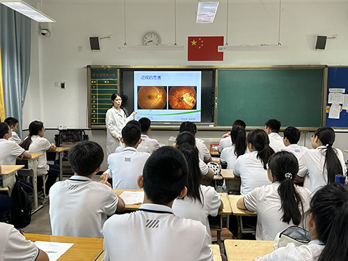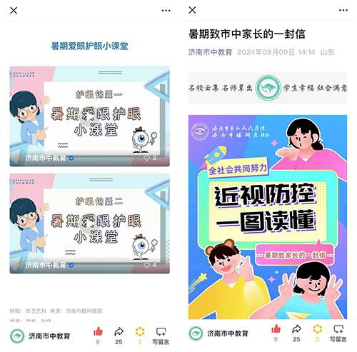 7月初,市二院护瞳团队受邀参加了济南明湖中学的结业式,专家们用丰富的经验和专业的知识,为800余名师生开启了一场别开生面的近视防控专题培训。专家们深入浅出地讲解了近视的成因和危害,以及科学的预防和控制方法,并特别强调了正确的用眼习惯和定期进行视力检查的重要性。为了使讲解更加生动,他们运用了大量直观的图片、视频资料,以便让孩子们在直观感受中学习知识。在互动问答环节,孩子们积极提问,专家们耐心解答,现场气氛热烈,孩子们在欢声笑语中不仅掌握了近视防控的知识,更激发了对视力健康的关注和兴趣。