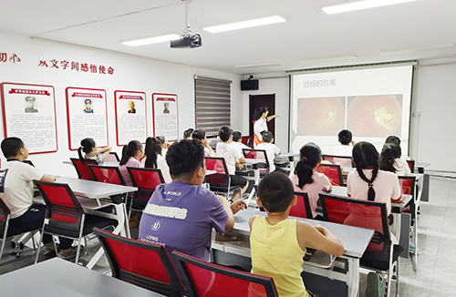 “护瞳行动志愿服务队”以市文明办组织开展的“童乐缤纷暑期”未成年人假期主题实践活动为契机,深入学校、社区,乃至线上平台,开展了一系列丰富多彩的近视防控专题培训活动,旨在守护孩子们的“睛”彩世界,让孩子们度过一个愉快又有意义的暑假。