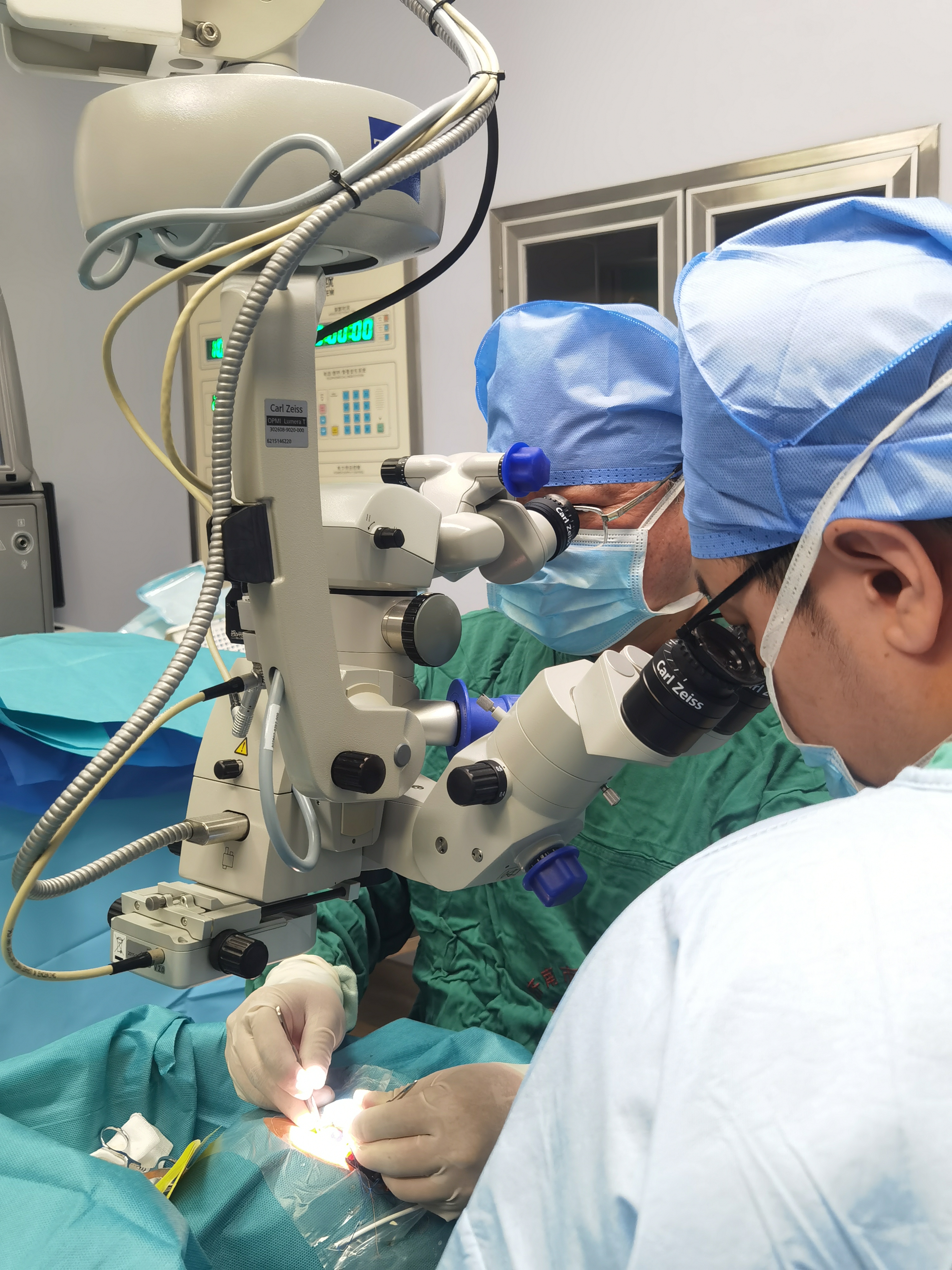 由于手术风险高、难度大,眼二科医疗护理团队对患者进行充分的术前护理评估,并与张阿姨及家属充分交流,减轻了患者术前紧张焦虑情绪。谭瑞礼教授及医护团队也制订了完善的手术方案。手术虽然复杂,但由于准备充分,进行地很顺利。右眼后入入玻璃体切割、硅油注入、重水注入、眼内激光、视网膜前膜剥除等操作一气呵成。