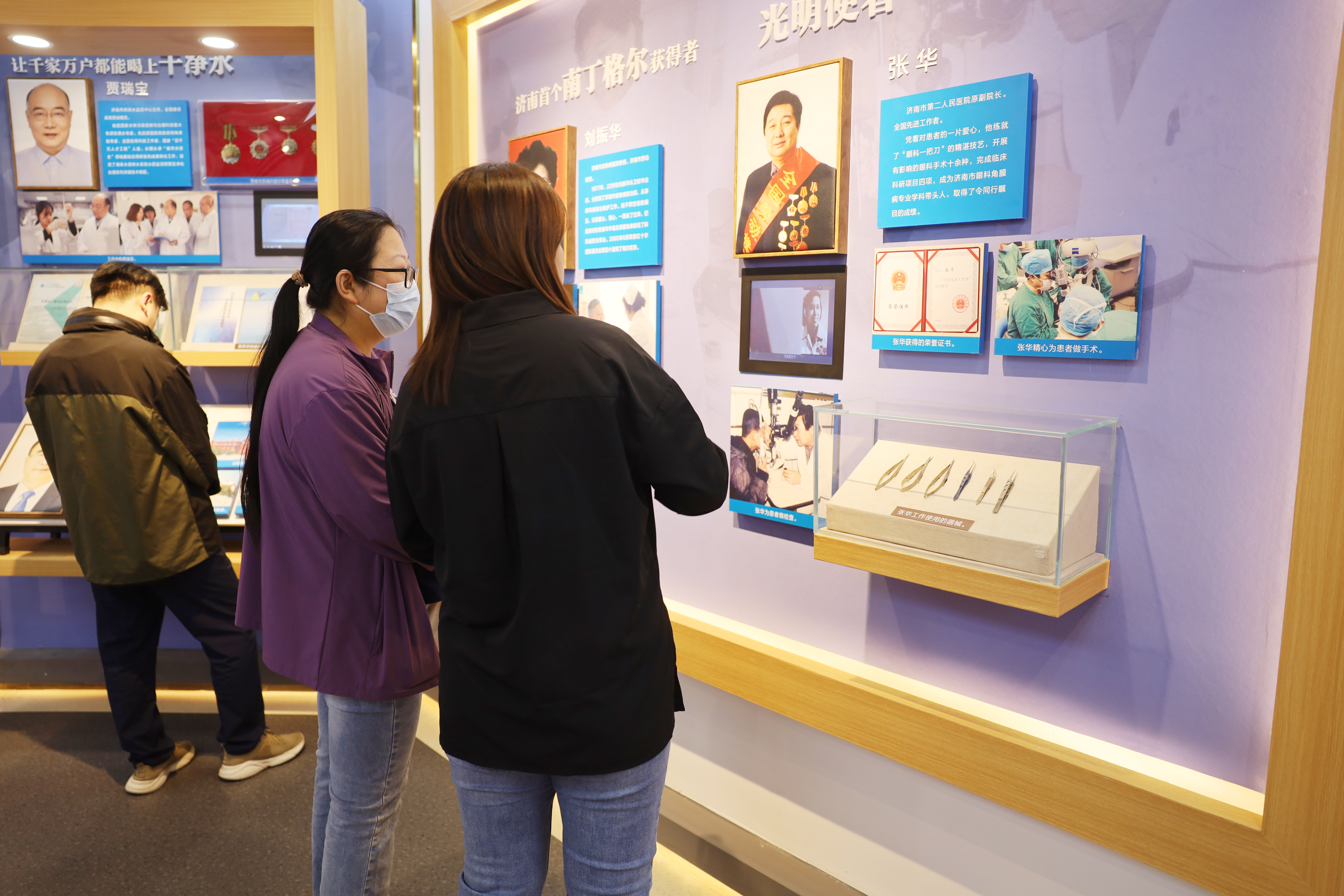 活动中,全体人员跟随讲解员的脚步,在展厅内驻足观看《时代挑山工——济南劳模风采》宣传片,切身感受劳模们满怀深厚爱国情怀和高尚劳动品德,随后,依次参观各专题的展区,认真倾听劳动模范、工匠和集体的先进事迹。其中,全国先进工作者、市二院眼科专家张华教授的先进事迹在展览中得到了充分展示,让在场的每一位职工都深感自豪和敬佩。