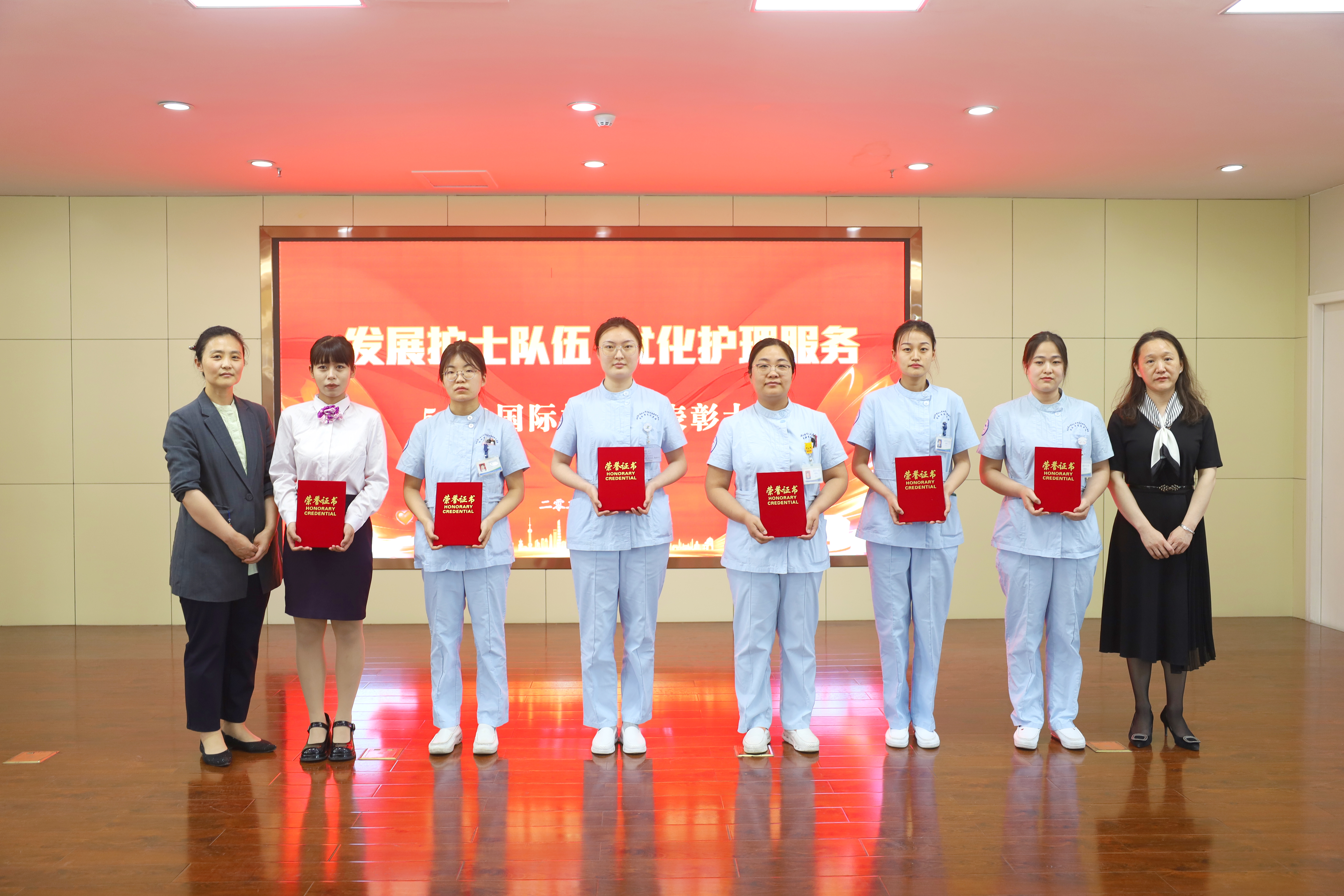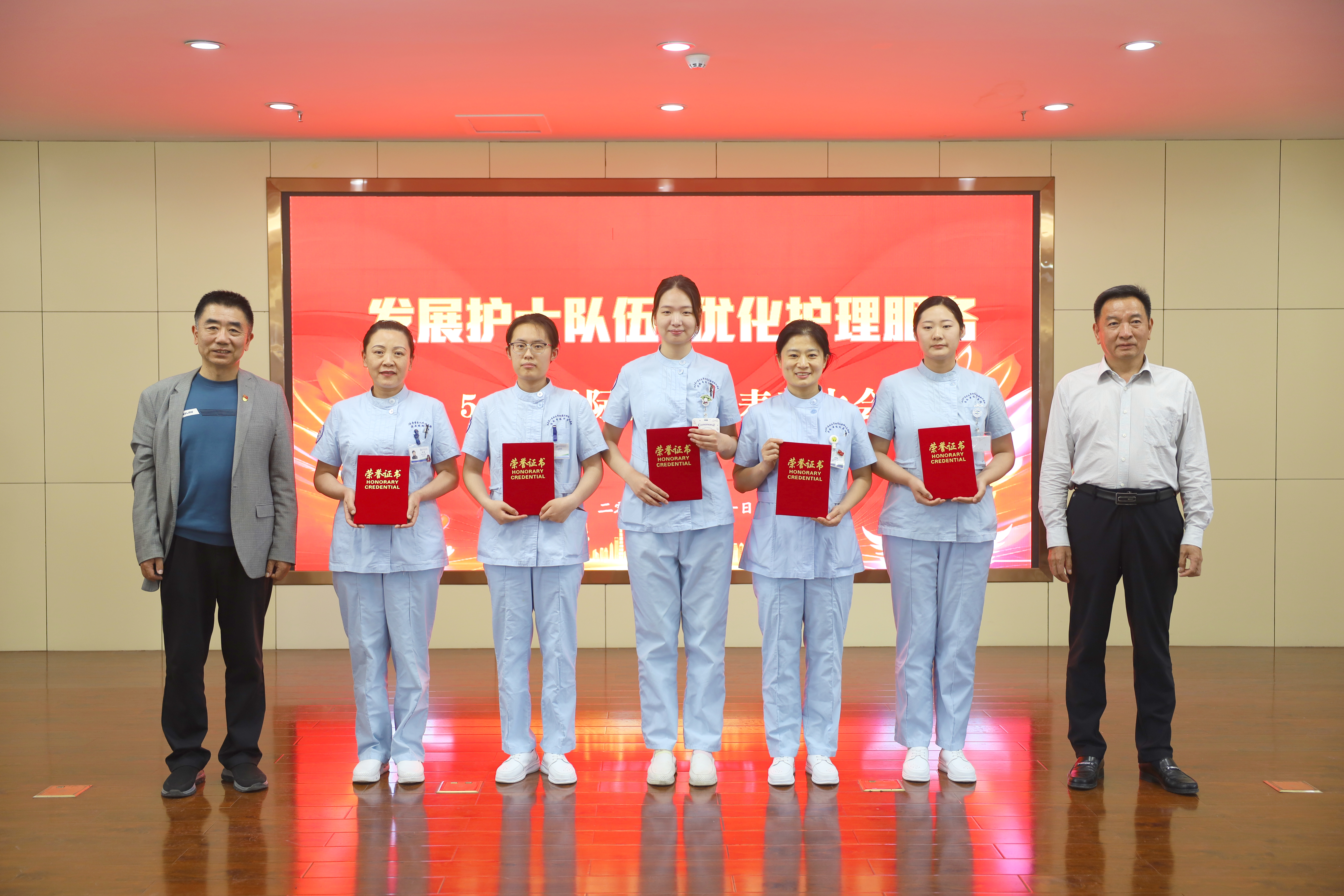 党委副书记曹传洲宣读表彰决定,院领导为在“‘患’位思考 共情体验”演讲比赛、心肺复苏护理操作技能竞赛、护理科普创作大赛、优秀临床护理质量改善竞赛等2024年护士节系列活动中的获奖人员颁奖,为年度院级优秀护士颁发荣誉证书。