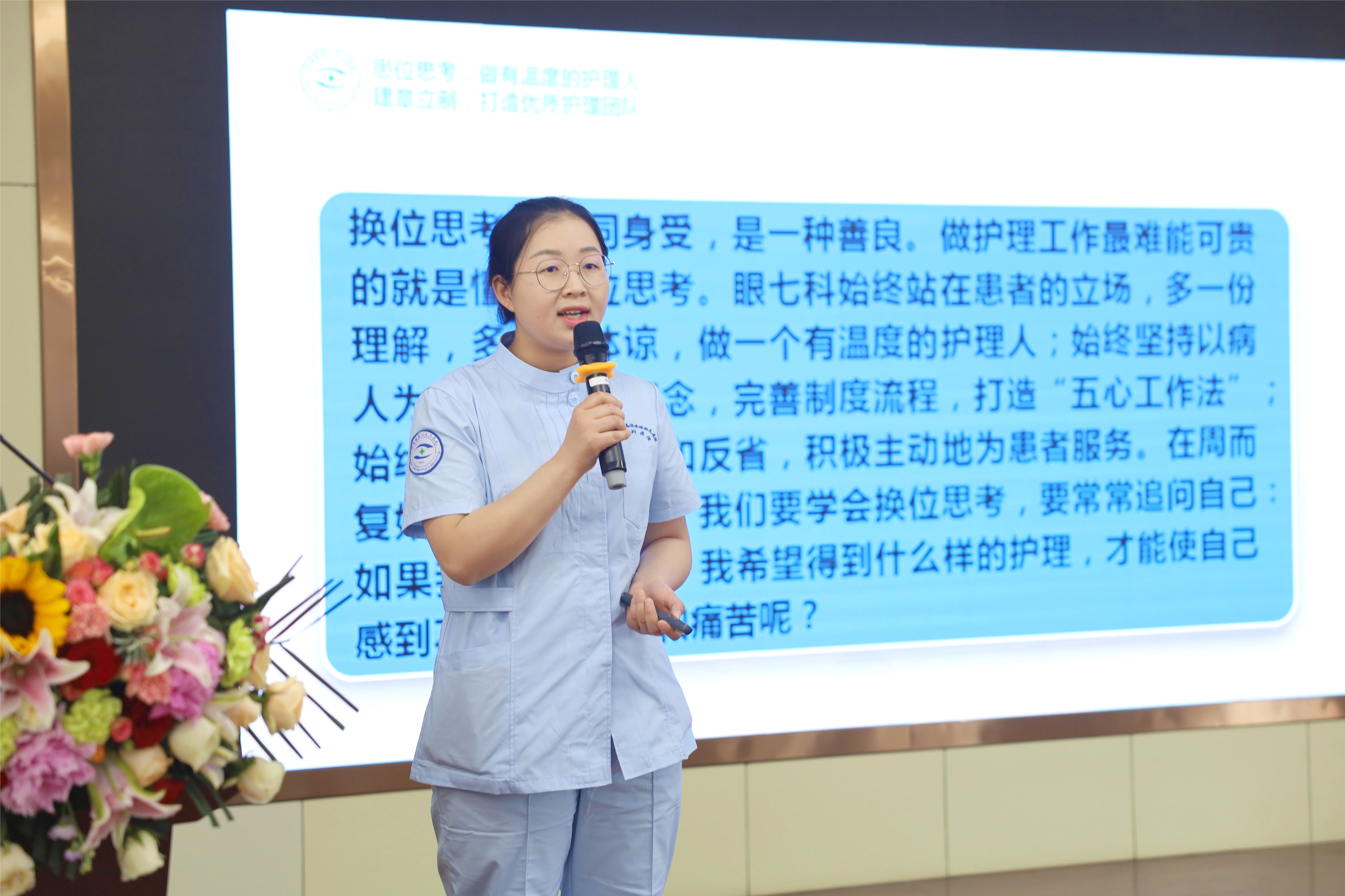 党委书记东光国作会议致辞,向全体护理人员致以节日的问候。他高度肯定了护理团队在医院各项工作中做出的重要贡献,并提出四点希望:一要强化党建引领,凝聚实干力量,坚定不移纵深推进医院的各项工作。二要夯实护理质量,树牢质量安全意识,落实核心制度,真正将“敬畏生命、生命至上”的伟大情怀融入到护理工作的全过程、全流程。三要打造人文品牌,做有“温度”的护理团队,不断加强人文关怀,积极打造有温度的百年眼科医院护理人文团队。四要强化基础,夯实三基三严及应急救护能力,成为熟练掌握各项护理技能的佼佼者。