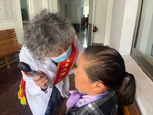 老专家为社区居民检查眼底