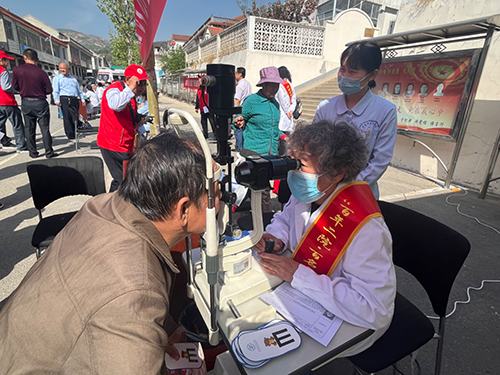 活动开始前,义诊地点早已挤满了前来问诊的群众。老专家们顾不得歇息,便带领志愿者为每一位村民进行视力、眼表、眼压及眼底等一系列检查,并耐心细致地为他们答疑解惑,就群众普遍关心的常见眼病的用药治疗以及日常保健等方面给予了详细指导。老专家们一对一地贴心服务,让村民们倍感温暖。此外,志愿者还向现场群众开展眼健康科普宣传,发放相关资料共计100余份,引导他们学习眼病的预防及应对措施,帮助他们增强健康保健意识。