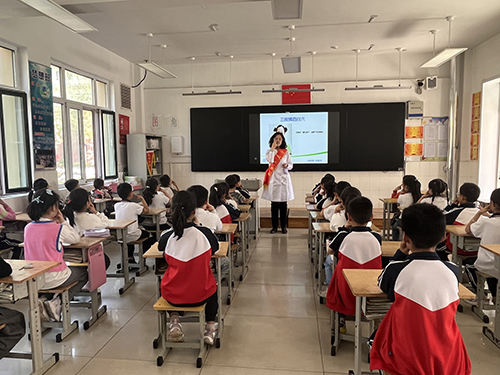 在老党员的引领带动下,中医眼科巾帼文明岗的志愿者们也在雪野中心小学里忙碌起来。山东省巾帼文明岗负责人,中医眼科副主任宿艳为孩子们带来了生动有趣的近视防控知识讲座。通过现场教学和实际演示,让孩子们了解了近视的危害和预防措施,掌握眼保健操的正确做法,帮助学生养成科学用眼、认真做眼操的好习惯。