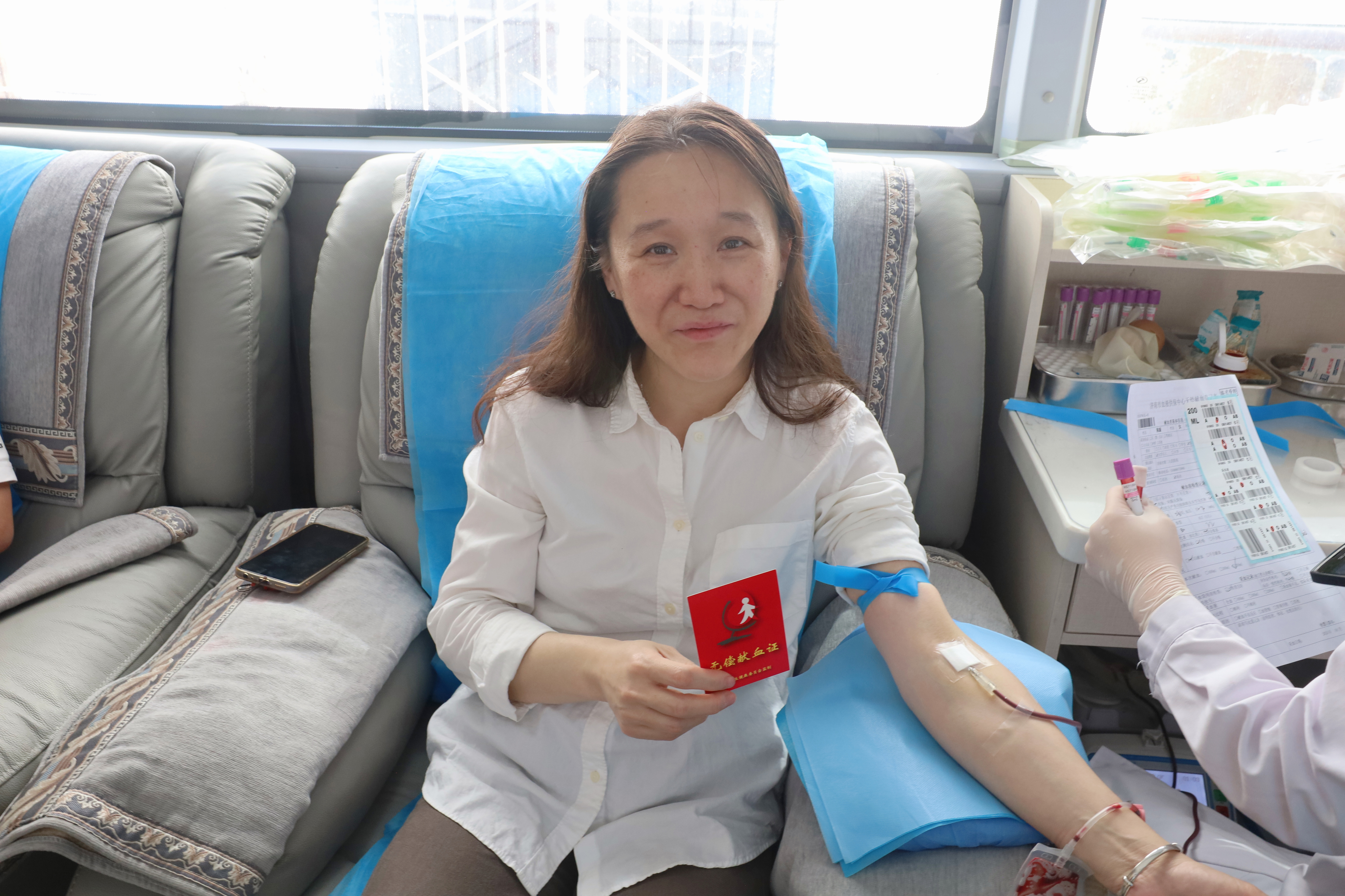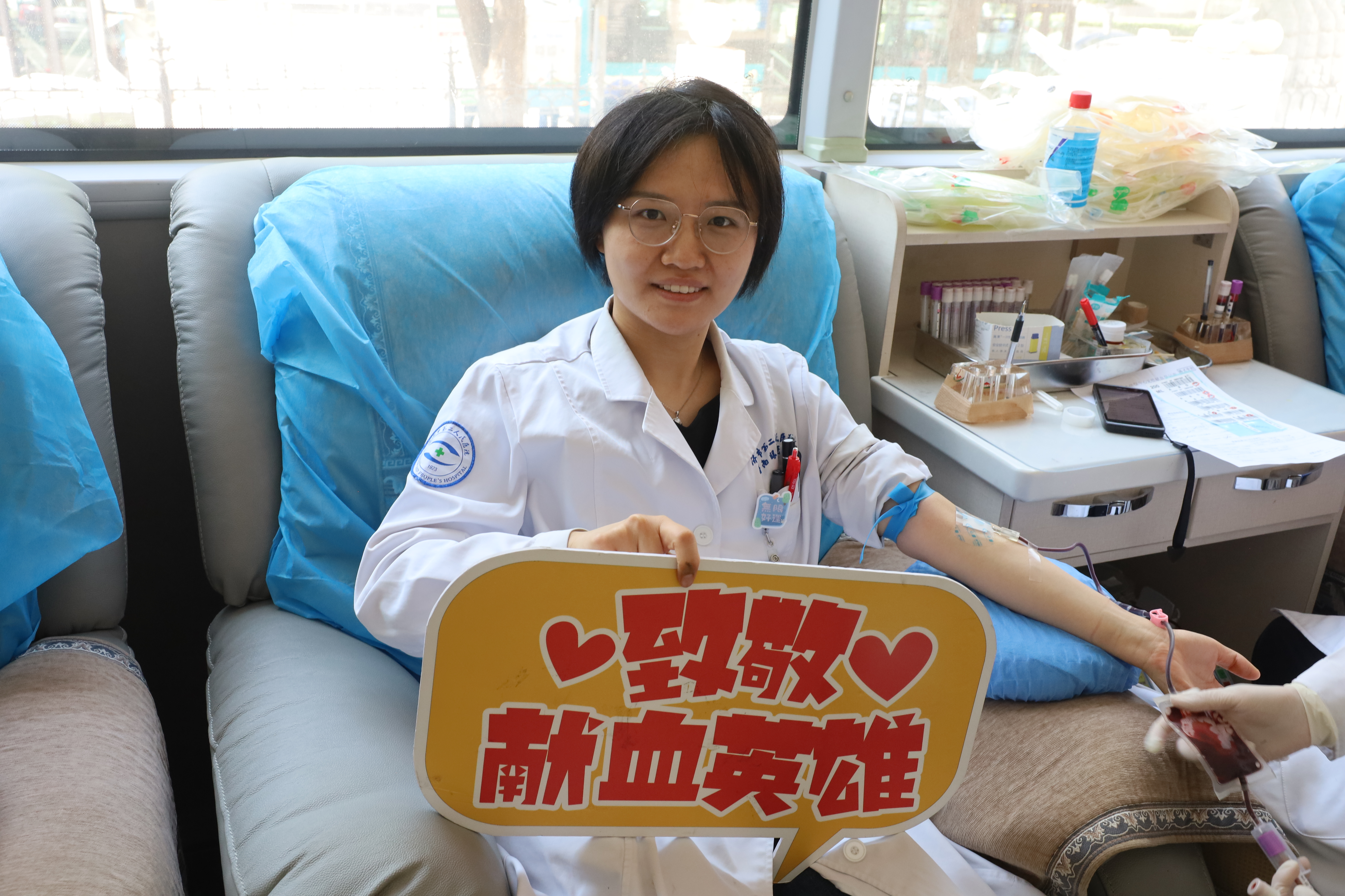 活动当天,医院干部职工们纷纷响应,无论是医生、护士,还是医技、行政和后勤人员,各科室职工们早早在献血车前排队,积极参与献血。