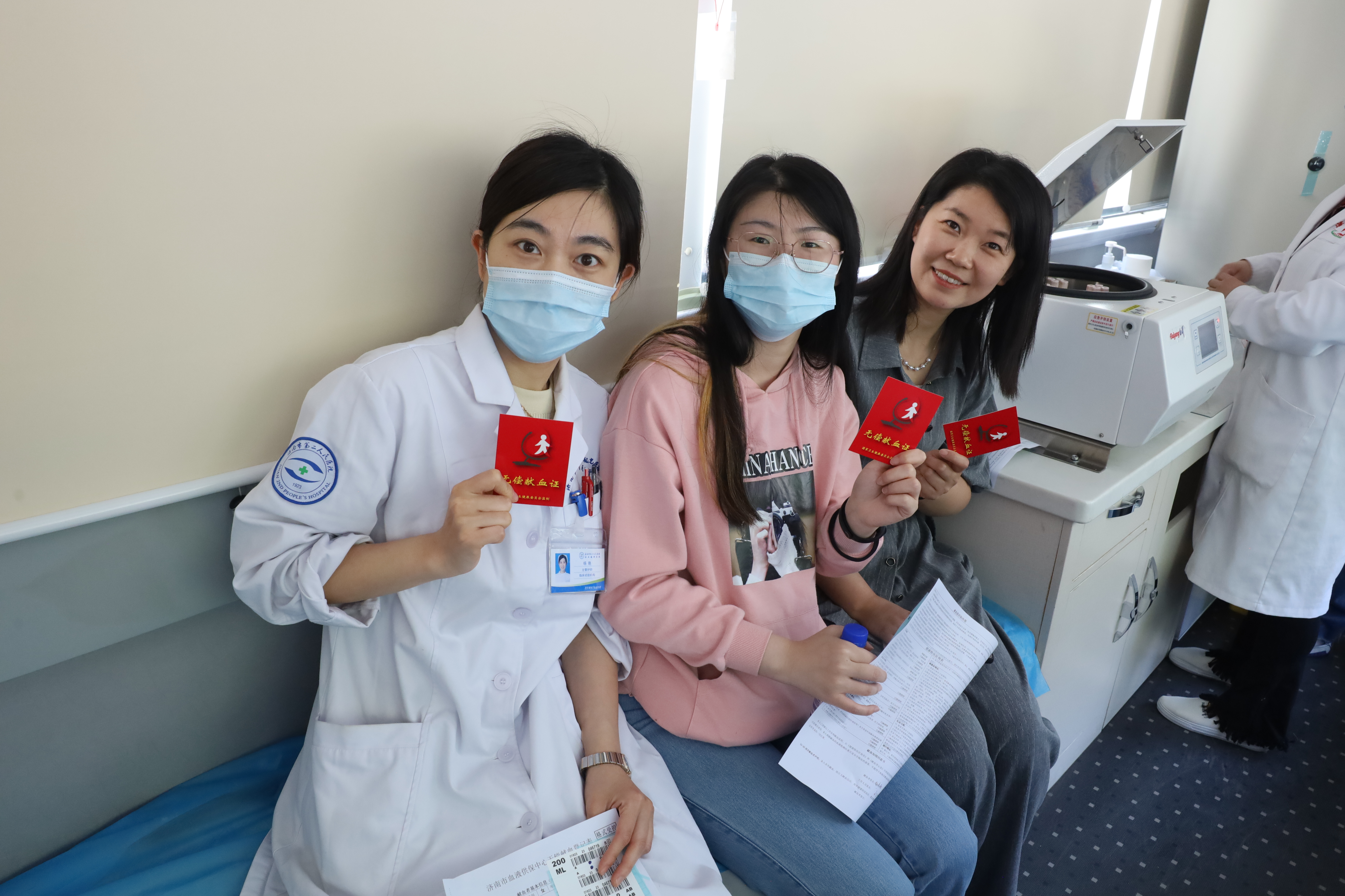 院职工献血后合影留念
