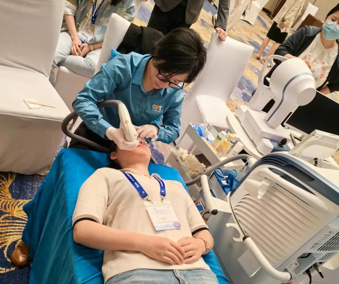 王旭副院长在本届学术会上,以《糖尿病性干眼》为题作大会发言,详细讲述了糖尿病与干眼的关系,并给予了治疗建议及病例分享,获得与会专家及业界同道的一致好评。在 Wetlab实操培训环节,市二院眼表疾病科护士长李淳、干眼门诊护士赵欣,在培训现场凭借熟练的操作,展示了熟练扎实的基本功。