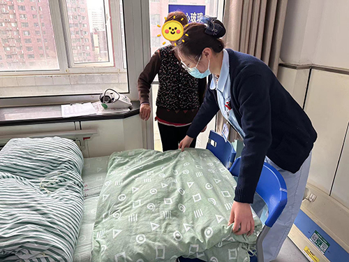 由于高度近视,长时间佩戴眼镜,小张无法参加剧烈运动,很少与同龄人一起交流玩耍。在与护士交流时,总是不自觉地低着头,问一句答一句。护士长刘燕带领护理团队进行了耐心的沟通和疏导,小张不安的情绪终于有所缓解。他提到自己在学校宿舍的床上常年无法伸直腿睡觉时,为了小张住院期间能休息好,责任护士将他的床尾床挡拆卸,替换成了两把与床高度相近的椅子,并在上面加铺了一床被子以延长病床的长度方便小张伸直腿休息,大男孩儿终于露出了久违的笑容。