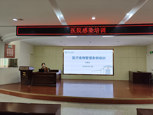 随后,医院感染管理办公室副主任杜敏作题为《医疗废物管理条例培训》的讲座,全院医护及医废转运物业相关人员参与了培训。通过对条例的解读,详细介绍了医疗垃圾的分类、转运存贮注意事项等方面内容。医疗废物管理是医院感染的重要组成部分,医疗废物的规范化处置对于控制传染源、保障医院医疗安全具有重要意义,并对参会人员进行了答题考核。