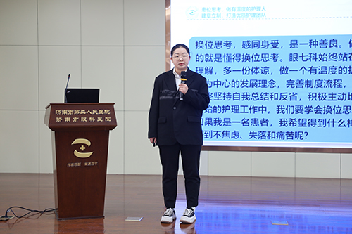 本次活动得到了临床护理人员的积极响应,共有13名选手参加了本次比赛。选手们借助精美生动的PPT等展现形式,图文并茂的情景再现经典服务案例,每个人都充分表达对“患”位体验活动的感谢与收获。“做有温度的护士,行有温度的护理”“以患者之心,观自我言行”“盲行之光—在黑暗中寻找护理真谛”“送你一朵小红花”“关爱老人多一点”等成为演讲中的“关键词”。