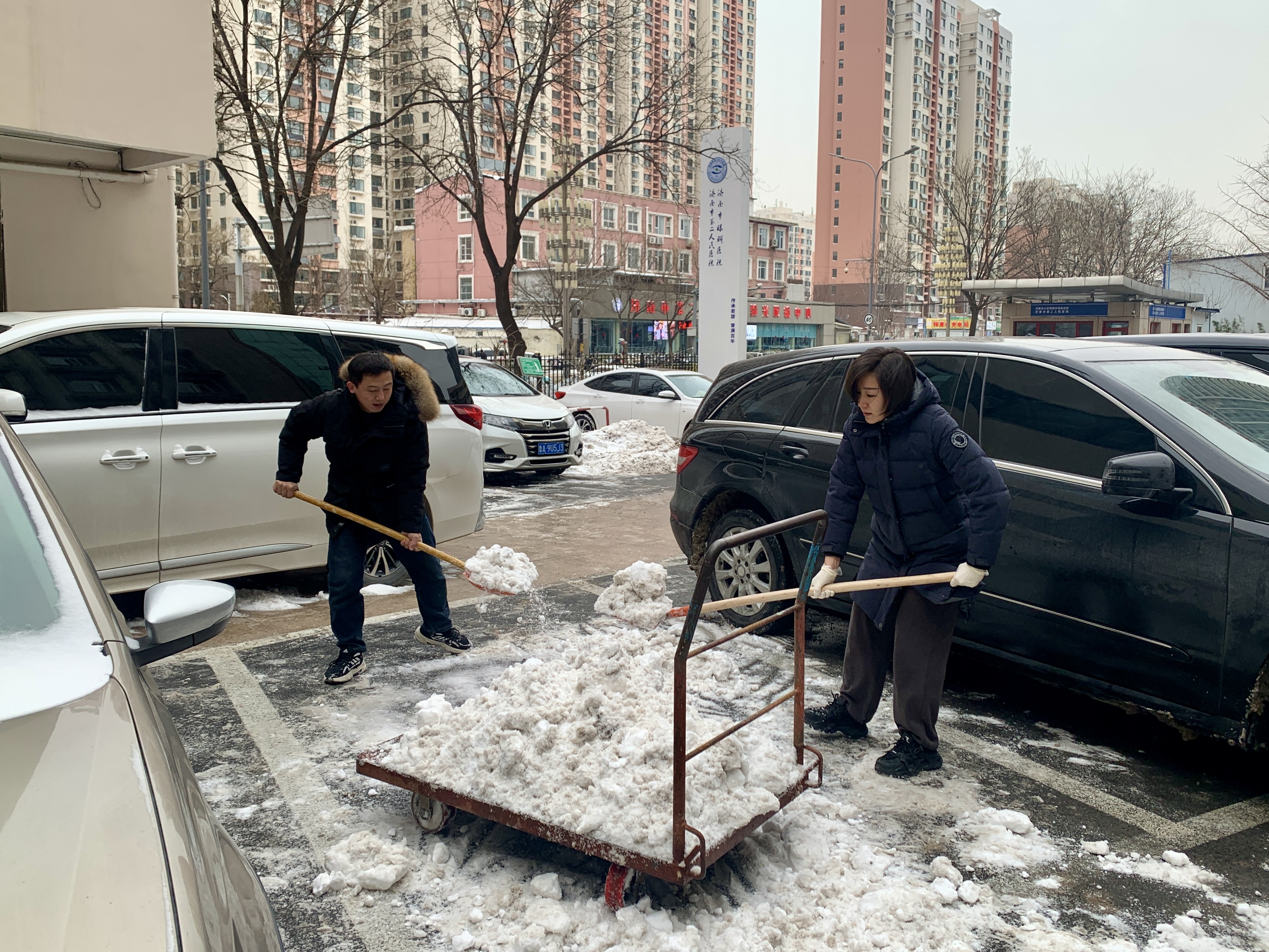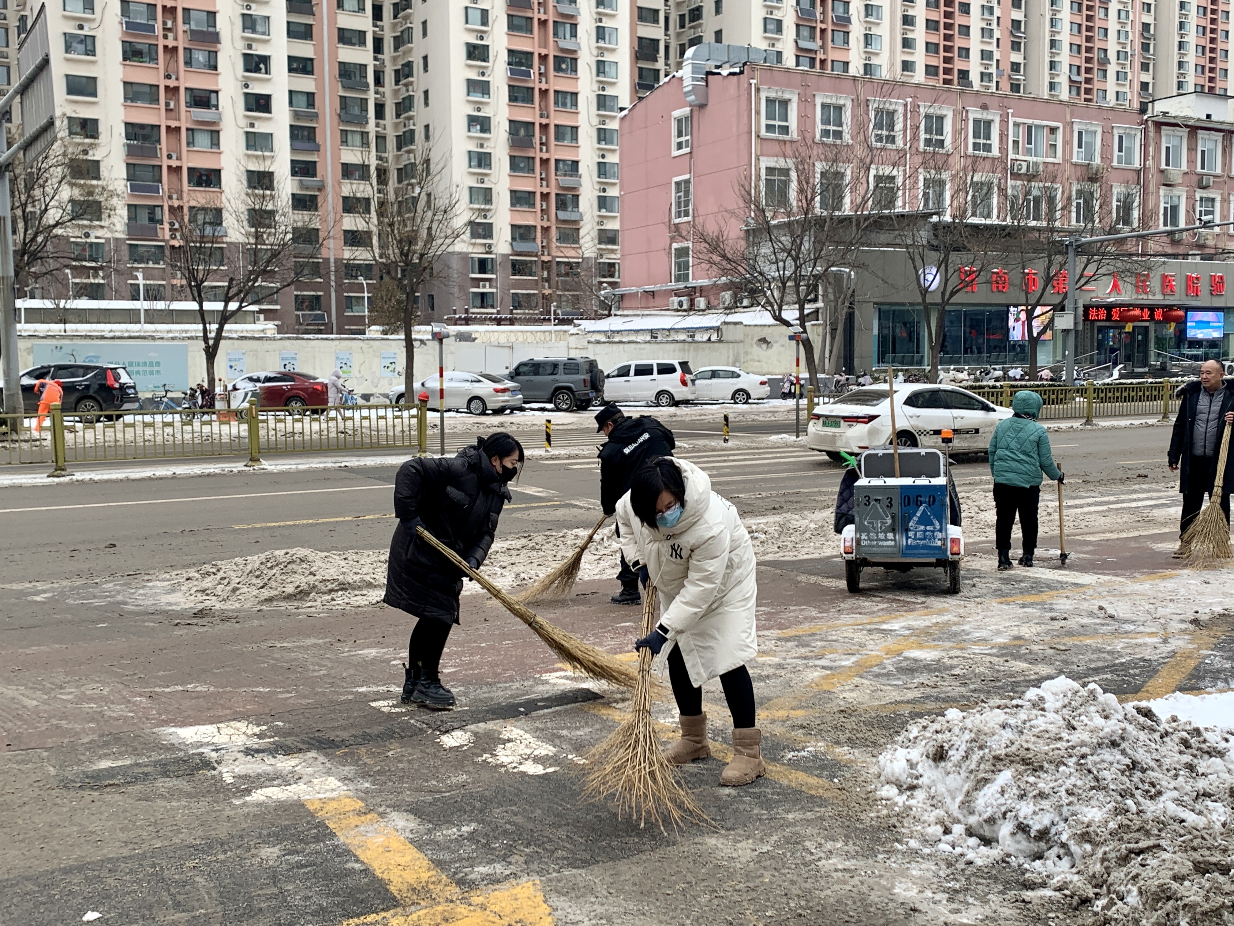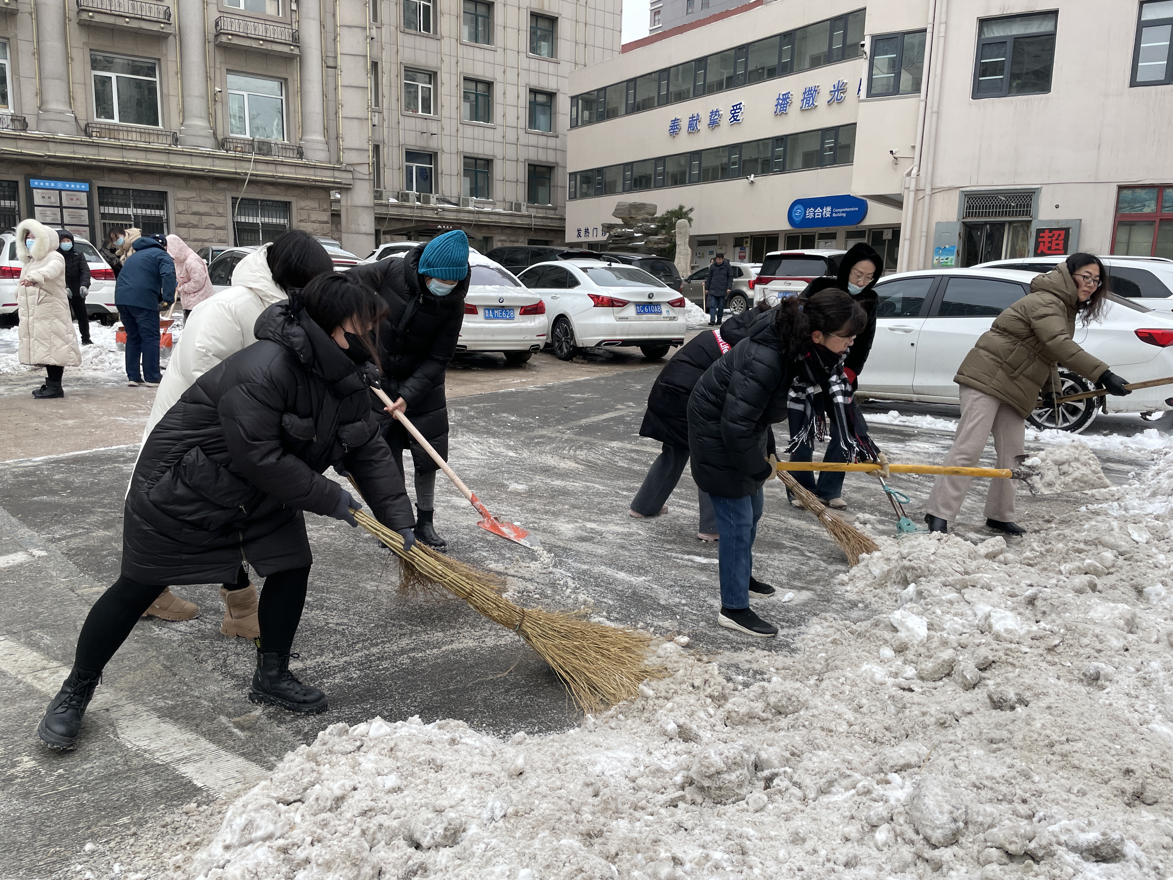 大家齐心协力清扫积雪