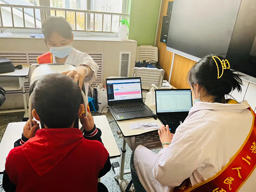 本次筛查工作中,医务人员通过扫描每位学生手中的二维码进入新型查体系统,实时上传本次检查结果的数据,为每位学生建立屈光发育档案。通过该套查体系统的应用,可以有效避免档案的丢失,提高了视力筛查的效率,实现了对学生视力发育变化的动态监测。