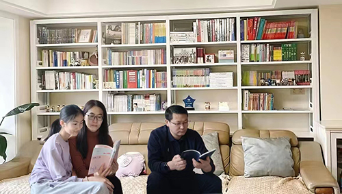 这个幸福的三口之家是一个书香满堂、和谐幸福的家庭。夫妻两人都是硕士,热爱阅读与学习。家长以身作则,注重对女儿教育的引导和督促,孩子的学习成绩十分优秀。一盏台灯、一家三口、固定时间、手捧书卷,是他们的生活日常画面。家中氤氲着书香,各类藏书千余册。一家三口经常参加公益活动,传递书香,传承知识。书籍不仅丰富并改变他们的生活,也让他们遇见了更广阔的世界和更优秀的自己。