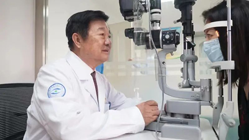 老专家用裂隙灯为患者检查眼睛