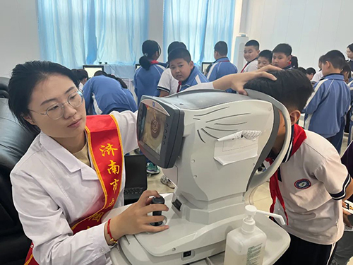 志愿者为学生进行电子验光