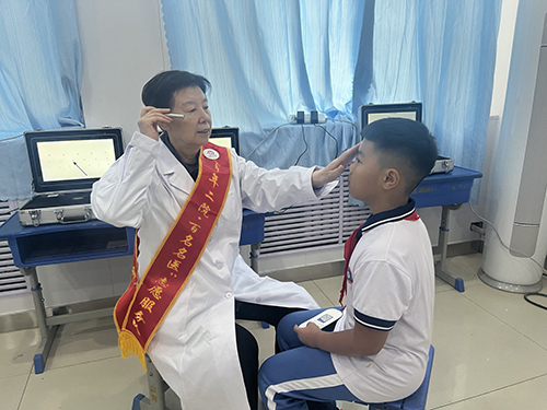市二院老专家为学生检查眼睛