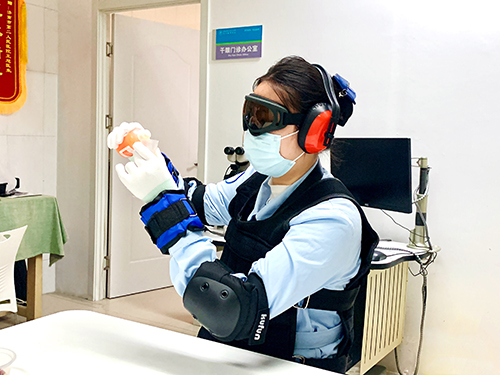 高龄老人缘何走路慢、夹饭易掉?通过“老年时光衣”来体验老年人的不易,或许就能找到答案。从头到脚“换装”:一套体验装置重量超过15公斤,这套装置主要包括特殊眼镜、耳套、加重背心、膝关节,肘关节固定套等部分。在这些装置的相互作用下,医护人员可“以身适老”,体验作为高龄老人的身心变化。