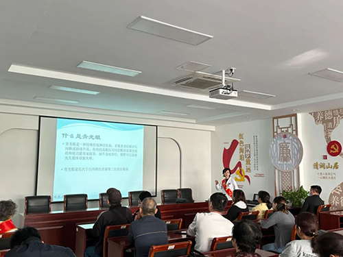 活动当天,青光眼专业退休返聘专家丛爱宁,青光眼科副主任、眼科主任医师张苗苗为现场50余位老年人为全面介绍了干眼症和青光眼的定义、致病因素、危害、防治及日常保健方法,帮助大家进一步增强对干眼症和青光眼的认识。在互动环节,专家们耐心回答现场老同志提出的问题,同时提醒在座的老年人日常生活中注意用眼卫生,发现眼部不适应及早就医,以免延误病情。精彩生动的讲座赢得了全场听众的阵阵掌声。
