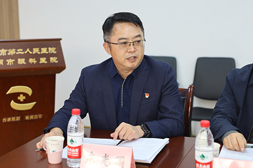 院长刘军主持,党委书记东光国致欢迎辞,副院长王旭从项目背景、项目概况、工作成效等方面汇报了医院儿童青少年近视防控工作开展情况,并展示了“学校卫生健康管理系统平台(眼防部分)”、近视筛查数据统计分析研究成果、“翻转拍”等特色内容。专家现场审阅了儿童青少年近视防控工作的档案资料,与相关科室人员就儿童青少年近视防控工作的开展情况及经验亮点进行了深入交流,并就医教融合、群团协同、多宣教模式打造等方面工作进行了指导。随后,调研组实地调研了医院儿童眼病及斜弱视门诊、中医近视防控门诊、医学配镜特色门诊、眼视光学临床教育基地、眼科门诊、眼科特检、干眼门诊、医学配镜中心等部门,深入了解了医院儿童青少年近视防控工作的开展情况。专家组一行表示,市二院近视防控工作扎实有力、成果显著,起到了良好的示范带动作用,对市二院近视防控系列工作取得的成绩给予了高度评价。