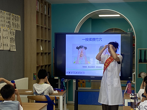本次医院特意选派技术过硬、经验丰富的眼科医务人员为孩子们开展近视防控讲座。护瞳团队的志愿者主要围绕近视的成因和危害及近视防控的方法展开了耐心细致地讲解,向孩子们着重强调了暑假期间应正确使用电子产品,保持良好的用眼习惯,每天坚持进行适度户外活动,以防止近视的发生和发展。随后,在志愿者的带领下孩子们认真地学起了眼保健操,志愿者走到孩子们中间,手把手地指导他们掌握关键穴位和手法技巧,纠正错误姿势,提高孩子们做眼保健操的准确性,确保眼保健操质量和效果。课后,孩子们向志愿者争相提问,积极参与互动环节,志愿者还向他们发放了视力表等小礼物,整场讲座在轻松愉悦的的氛围中圆满结束。