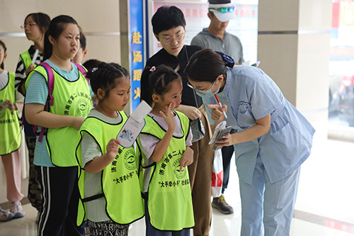 据悉,市二院团委“大手牵小手”暑期社会实践活动已经连续开展了三年,得到了院党委的大力支持,也获得了学生及家长们的认可,今后院团委将继续利用医院特色专业优势,联合结对共建单位通过讲座、互动、观摩等多种形式,为青少年搭建一个社会实践的平台,丰富学生的假期生活,为保障孩子生命健康安全构筑起坚实防线。(团委 黄烁)