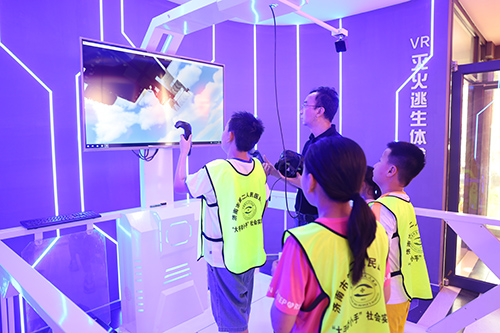 小朋友们参观消防主题展馆
