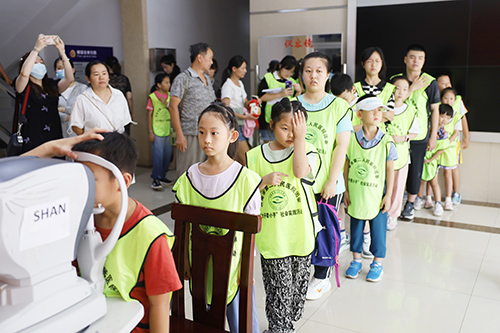小朋友们排队进行电子验光