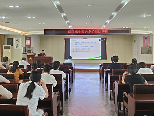 组织开展医院感染眼内炎预防培训讲座,全院相关科室医务人员通过线上、线下相结合的形式参与培训,市二院副院长王旭出席培训活动并讲话。