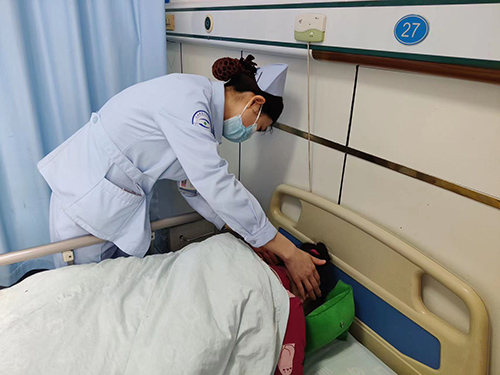 眼二科有相当一部分眼底病患者需要术后采用俯卧位,这也是提高手术成功率、降低术后复发率的关键。为了确保患者的治疗效果,科室设俯卧位指示牌提醒指导患者正确卧位,并通过播放音乐和故事,冥想,按摩热敷等方式转移注意力,调节情绪和身心状态,缓解俯卧位带来的心情不适。对于出院患者则采用视频方式对患者俯卧位做出更加详细的指导,为患者康复保驾护航。