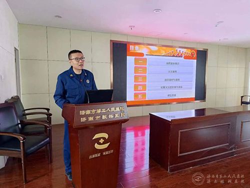 邀请槐荫区消防大队专家潘博虎对全体职工开展消防安全培训讲座,曹传洲副院长主持活动。