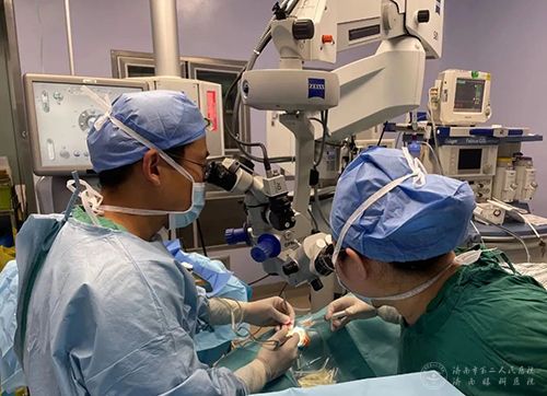 据李彬主任介绍,患者这种情况已属于典型的白内障过熟期,且已经失明。过熟期白内障晶状体皮质已经液化,会通过晶状体囊膜渗漏至前房内,引发眼球内部的自体免疫反应,导致继发性青光眼等疾病,严重时甚至会引起视野缺损以及失明等表现。由于过熟期白内障通常会因为晶状体皮质液化,导致手术时撕囊困难,这给手术带来一定的难度和风险。术前,李彬主任带领手术团队为阿雅量身定制了详细的手术治疗方案。术中,李彬主任通过与治疗团队的默契配合,凭借自己精湛的医术及丰富的临床经验,成功地实施了超声乳化抽吸+人工晶状体植入术。术后第二天,阿雅的视力恢复到0.2。也许,这对一般人来说不算什么,但对失明的阿雅来说已经是非常惊喜了。