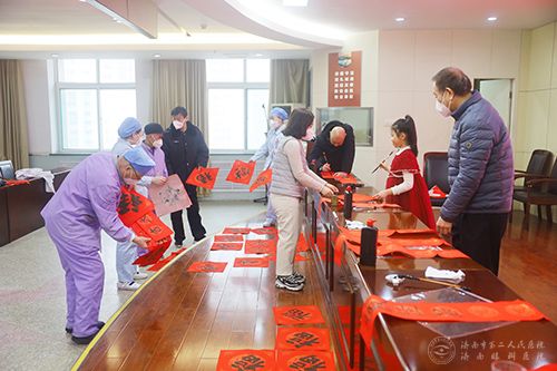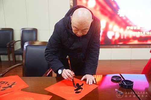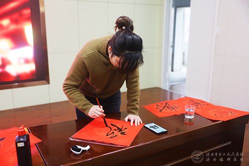活动在医院门诊病房楼七楼会议室举行,邀请了职工及家属中的书法爱好者作为主角,他们挥毫泼墨,把新春的祝福和美好的期盼,书写在火红的春联里。