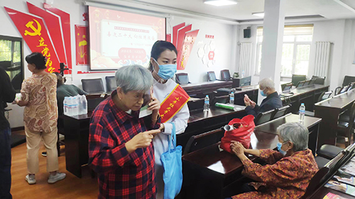志愿者为社区居民耳穴压豆