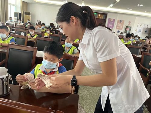 财商讲座结束后,工作人员为每位参加活动的学生们发放一定量的训练用点钞币进行点钞体验,学生们一边紧盯手中的纸币一边快速地点动,那认真劲儿像极了专业的银行工作人员。