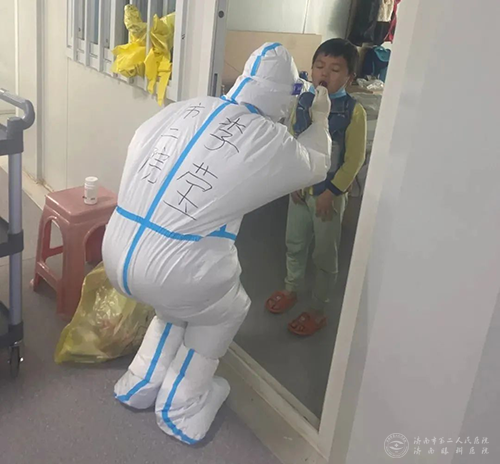 4月22日,是让我难忘的一天。这天晚上10点,接到了支援槐荫方舱医院的任务。我的心情既激动,也有些复杂。说激动,因为我的请求得到了批准,可以上“最前线”了。说复杂,因为我有5岁的女儿和3岁的儿子,他们正处于需要妈妈陪伴的年龄,看着他们熟睡的样子,心里不禁有些愧疚。好在父母和丈夫此时成为我坚强的后盾。