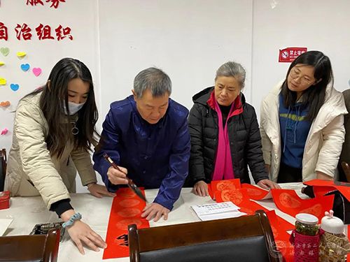 活动中,青年文明号、巾帼文明岗代表与结对社区老党员家庭欣赏精彩节目的同时,还亲切询问老党员的生活和健康情况,并向他们致以节日问候和新春祝福。表演结束后,市二院职工刘明同志现场书写对联、福字,为社区居民送上新春的祝福,为即将到来的春节增添了浓浓喜气。