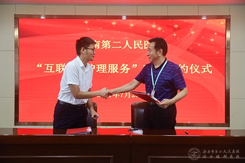 曹传洲副院长与山东优护网络科技有限公司项目经理刘璐进行现场签约。