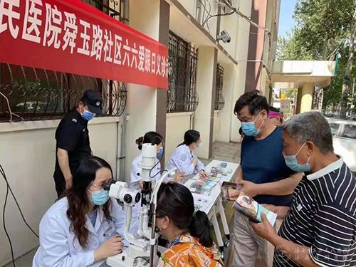 青光眼、白内障、眼底病、角膜病等专业的眼科医护人员组成4支队伍,同时奔赴各个义诊科普点。本次活动的志愿者全部由中级职称以上医务人员担任,团队携带了视力表、裂隙灯、验光仪、眼底镜等多种眼科检查设备,为就诊群众提供了视力、眼前节、眼后节等专业检查。与此同时,志愿者们还在现场向群众发放了眼科科普宣传册、视力表等资料,并送上医院制作的精致纪念品,积极宣传爱眼知识。