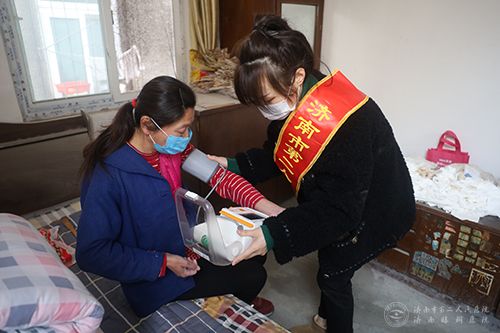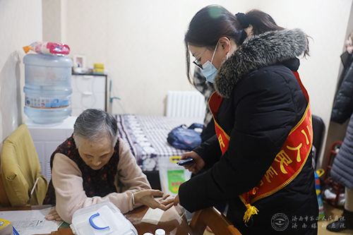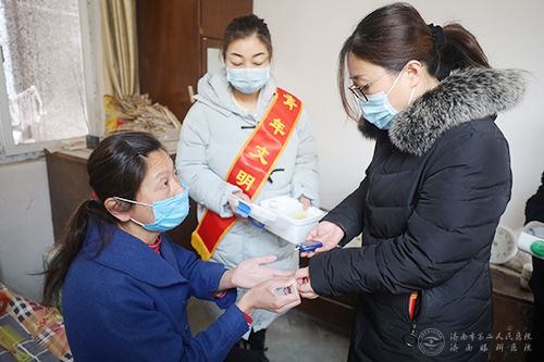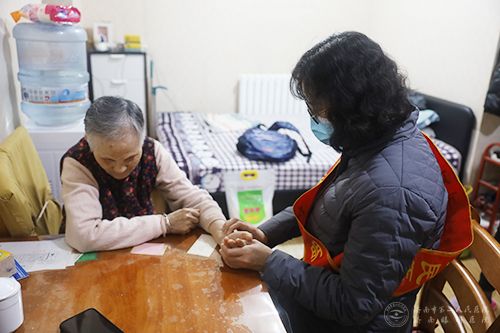 志愿者为困难居民测血糖
