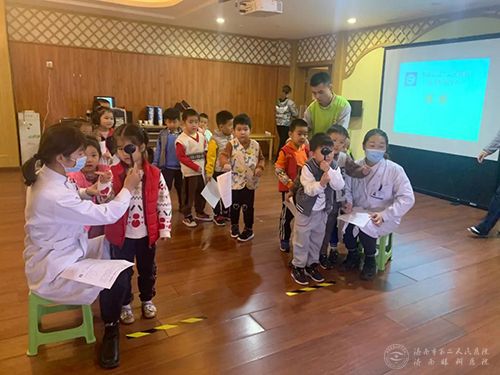 “近视早防控”公益志愿服务活动走进梧桐树九英里幼儿园,为70名小朋友做视力检查和眼健康筛查。来自市二院青年文明号集体和配镜中心的青年志愿者参与本次活动。