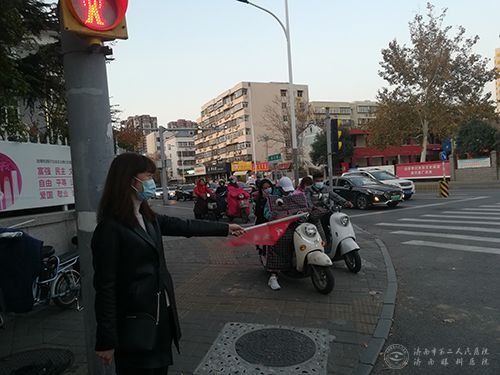 在交通高峰期,志愿者们准时来到了槐荫区经四纬六路十字路口,进入了各自的执勤岗位。他们手持“文明行车、礼让行人”的指挥旗,开展交通秩序维护、违规行为劝导和便民服务工作。标准的劝导语、规范的手势、热情的服务,得到了广大市民的认可。