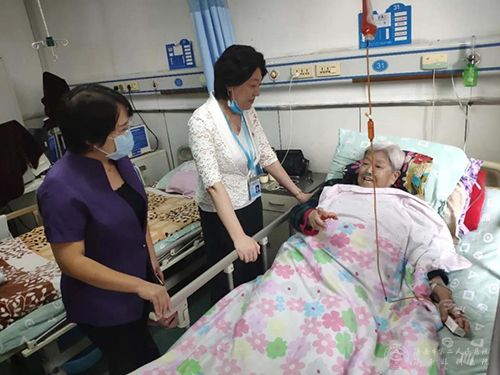 党委书记吕丽萍、副院长曹传洲、纪委书记李洁月带领离退休职工管理科的工作人员来到内科病房,看望慰问了正在住院治疗的离退休老同志,为他们送去了党的温暖和节日的祝福。