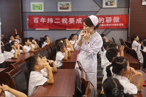 和济南市市中区教育和体育局联合举办的“护瞳行动”大型志愿服务项目走进济南市纬二路小学,为进入新学年的孩子们传授近视防控的基本知识。