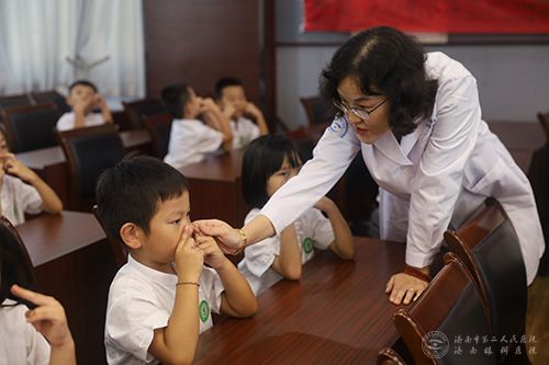 活动当日,共有160多名一年级新生在老师的统一组织下参加了本次活动。市二院中医眼科副主任医师宿艳通过PPT课件生动直观地为孩子们讲解了近视成因与防控的基本知识,引导大家养成良好的用眼卫生习惯。中医眼科护士魏乐为孩子们展示了眼保健操的全套分解动作,带领孩子共同做眼保健操,并手把手地纠正了错误手势。通过现场示范与讲解,孩子们快速掌握了眼保健操的规范动作。宿主任叮嘱孩子们要从小养成勤洗手、不揉眼、爱护眼睛的好习惯,合理用眼避免用眼过度,认真做好眼保健操的每个动作,预防近视保护视力健康。